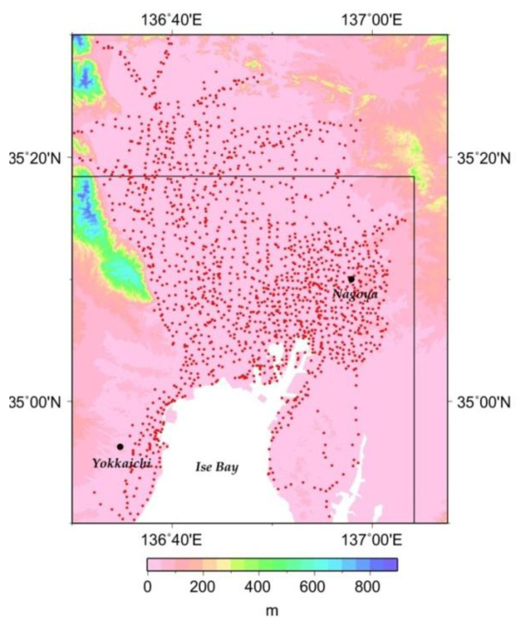 - Ito, T.; Fukuyama, K. Analyses of Land Subsidence over the Nobi Plain with the aid of GIS. Geoinformatic 2002, 11, 413–416. (in Japanese). [Google Scholar]