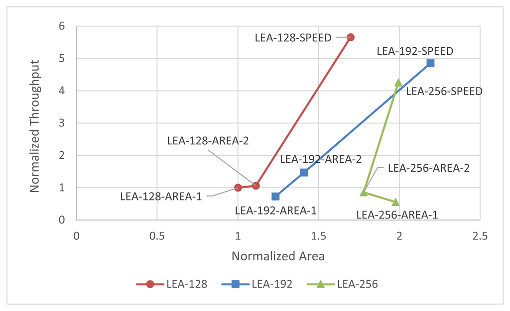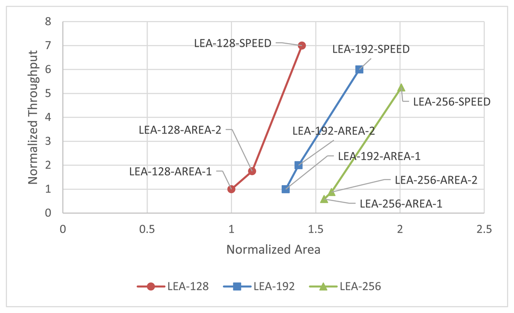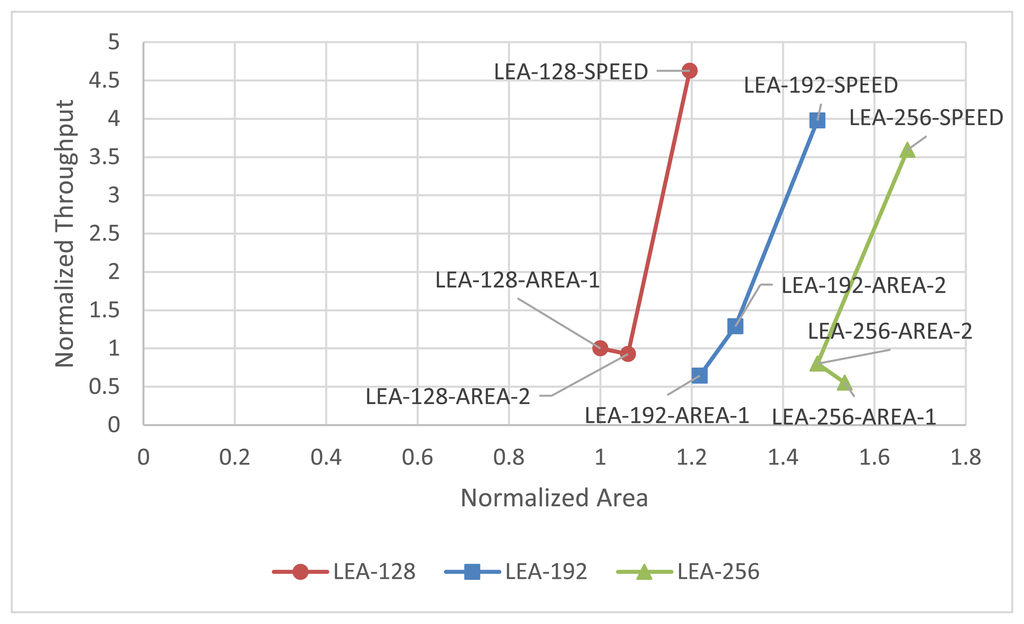 Figure 16 shows the normalized throughput and size based on LEA-128-AREA-1. The relative implementation results can be found in the figure.