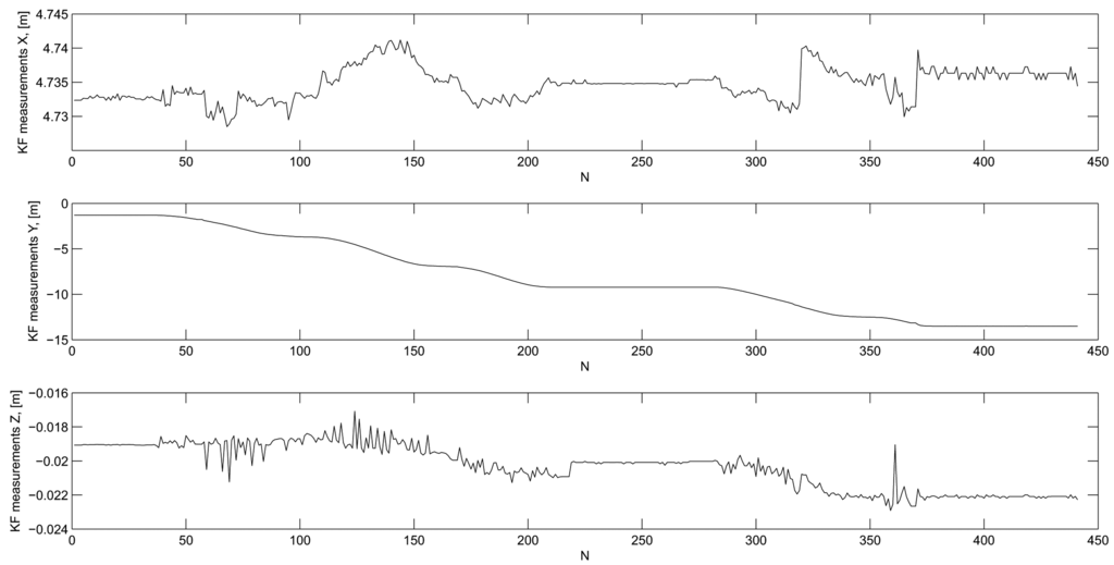 - Gamse, S.; Wunderlich, T.A.; Wasmeier, P.; Kogoj, D. The use of Kalman filtering in combination with an electronic tacheometer. Proceedings of the 2010 International Conference on Indoor Positioning and Navigation, Zurich, Switzerland, 15–17 September 2010.