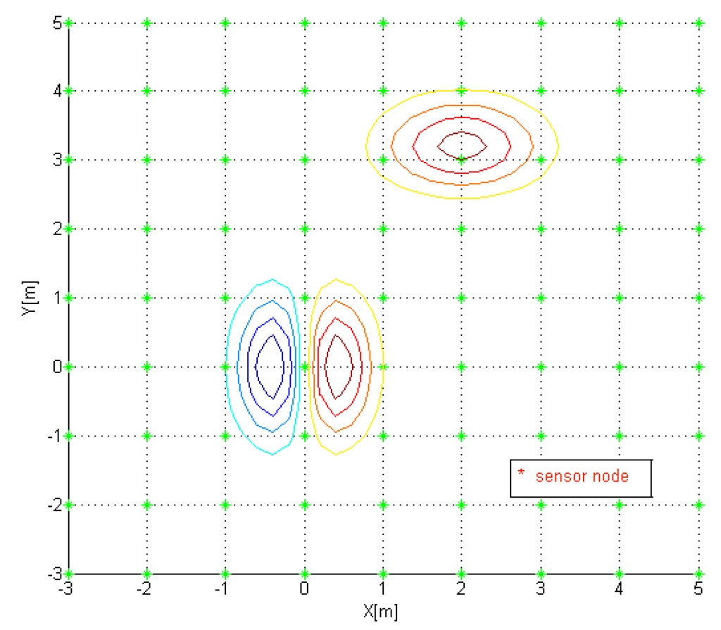 Previous work focused on sensor coverage and connectivity while trying to minimize the number of required sensors. In [5], the deployment of wireless sensor network in a deterministic model with obstacles is investigated. The sensor’s sensing model and coverage quality evaluation are developed for optimal sensor placement. Reference [6] proposed a self-organized algorithm, by waking up some sensor nodes or making some sensor nodes sleep. This algorithm used the virtual potential field to make the sensor nodes change positions. Another approach is to randomly deploy sensors based on the Poisson distribution in [7] using the relationship between the coverage area and node density. General optimization algorithms such as the simulated annealing algorithm [8] and the particle swarm optimization [9] are used for sensor placement. This paper presents a new idea of sensor node reconfiguration based on the sensor measurements, especially their spatial gradient.