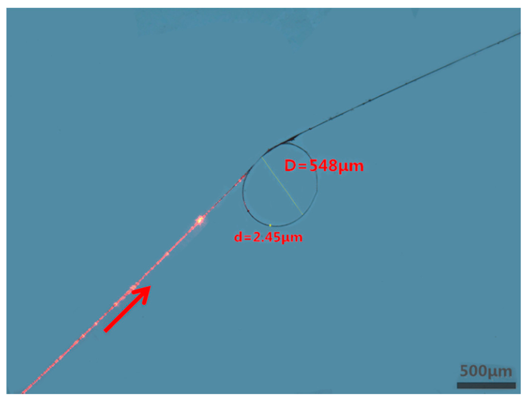 To further investigate the dependence of sensing sensitivity on different fiber diameters, six MKRs were fabricated. The fiber diameters and ring diameters are measured by microscope and their Q-factors and finenesses under the same wavelength of 1550 nm are listed in Table 1.