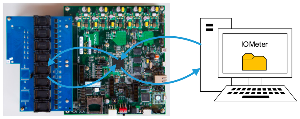 To fully evaluate the proposed Asymmetric Programming and measure its performance with more comprehensive metrics, we conducted more experiments with IOMeter [39]. The system architecture is shown in Figure 11. IOMeter is widely used as a standard and configurable workload generator and it conducts the write and read operations to the experimental platform according to the configuration.