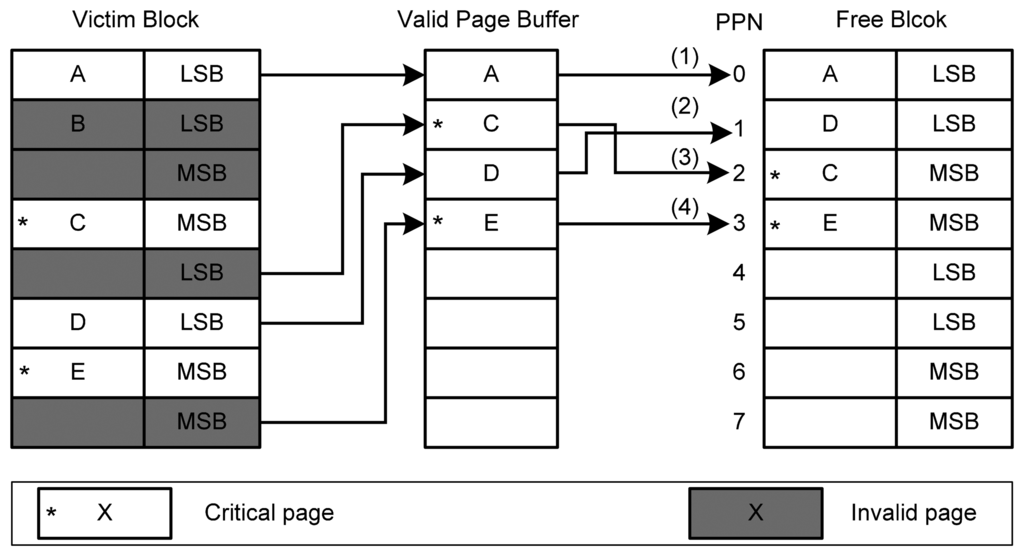 Asymmetric Programming adopts two reliability techniques, namely MSB allocation and asymmetric garbage collection, to enhance the reliability of metadata in MLC NAND flash memory storage systems. The MSB allocation is a reliability strategy that identifies the pages that contain metadata and allocates metadata pages to MSB pages that have lower bit error rates. Asymmetric garbage collection is another reliability strategy that aims to fully utilize the storage space when triggering garbage collection operations. This strategy uses a small buffer to reorganize the valid pages and assign the pages to free pages based on the importance of the data. In the following subsections, we will present these two strategies.