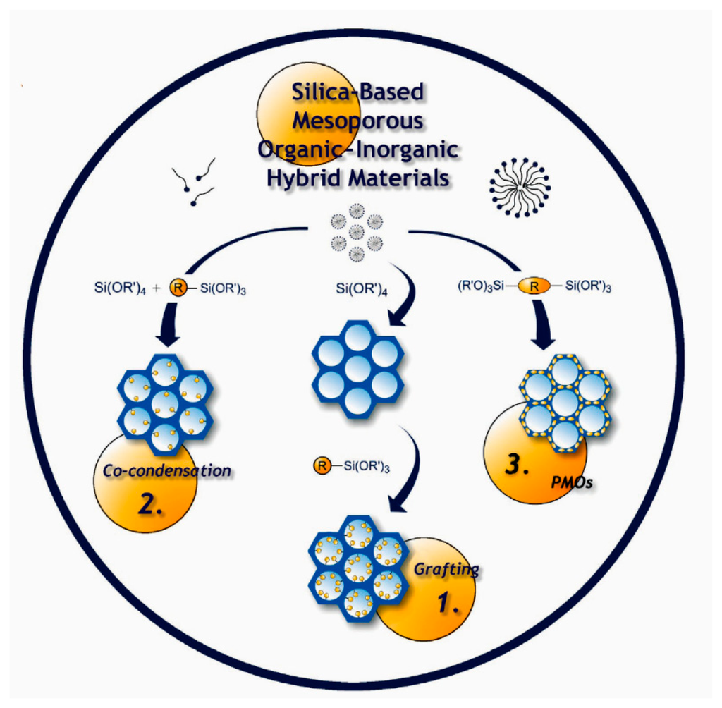 - Stein, A.; Melde, B.J.; Schroden, R.C. Hybrid inorganic-organic mesoporous silicates-nanoscopic reactors coming of age. Adv. Mater. 2000, 12, 1403–1419. [Google Scholar]