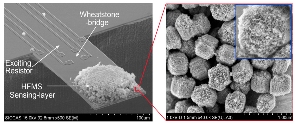 - Yu, H.T.; Xu, P.C.; Xia, X.Y.; Lee, D.W.; Li, X.X. Micro-/nanocombined gas sensors with functionalized mesoporous thin film self-assembled in batches onto resonant cantilevers. IEEE T. Ind. Electron. 2012, 59, 4881–4887. [Google Scholar]