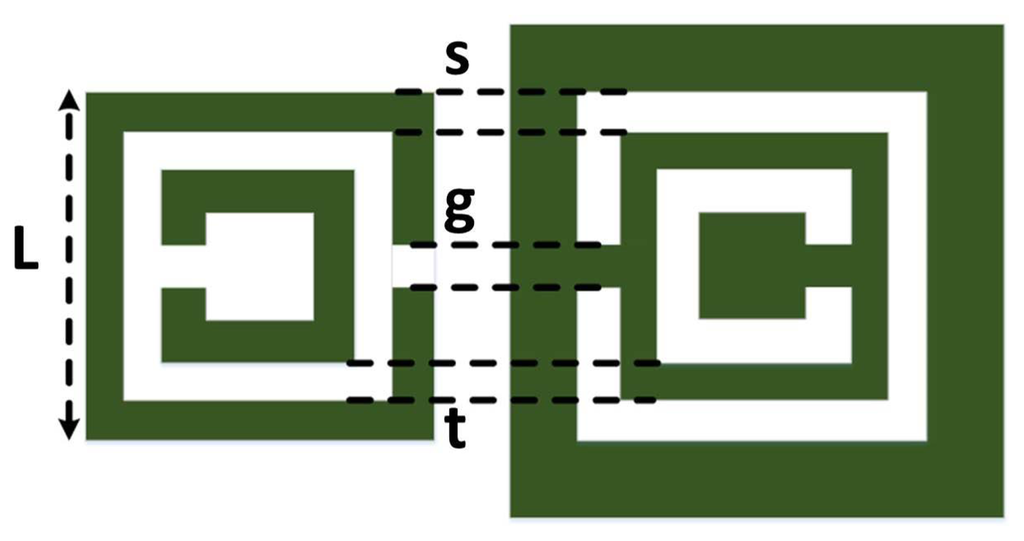 Quasi-static resonators are designed such that the resonators' structures are electrically small compared with the electromagnetic field wavelength of the excitation source. The resonance phenomenon in quasi-static resonators is based on the effective tightly-distributed capacitance and inductance of the structure, unlike resonators of dimensions comparable to the wavelength, where the resonance phenomenon is based on phase propagation. Several works provided circuit models for CSRRs [16–18]. Generally, the resonance frequency can be formulated as.