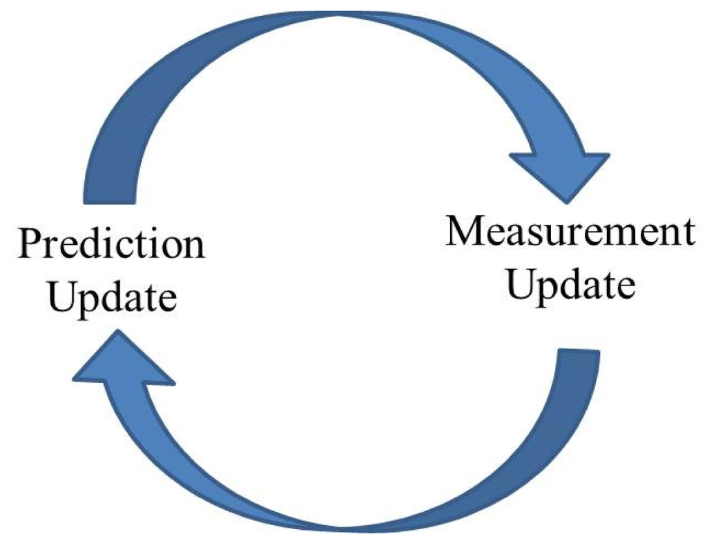 A Kalman filter is a statistical, recursive estimation technique using noisy measurements [13]. The Kalman filter is an approach that is used to to estimate the state of a discrete-time controlled process. The Kalman filter uses a conventional iterative prediction/correction approach, as shown in Figure 1. Consider a system that is governed by the linear stochastic difference in Equation (1):