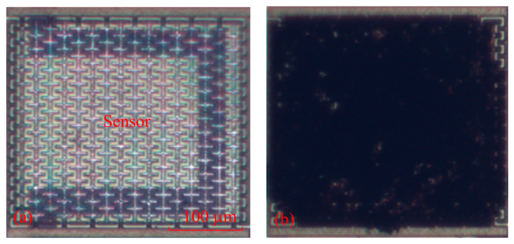 The integrated humidity sensor chip was manufacture using the commercial 0.18 μm CMOS process of TSMC (Taiwan Semiconductor Manufacturing Company, Taipei, Taiwan). Figure 6 shows the process flow of the integrated humidity sensor.