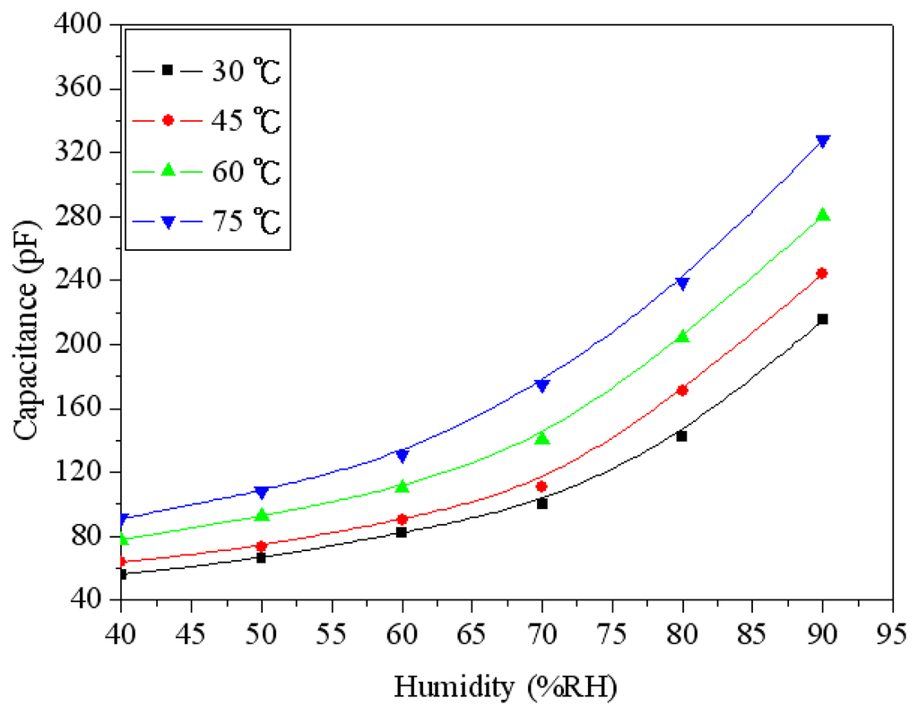 - Kim, J.H.; Hong, S.M.; Moon, B.M. High-performance capacitive humidity sensor with novel electrode and polymide layer based on MEMS technology. Microsyst. Technol. 2010, 16, 2017–2021. [Google Scholar]