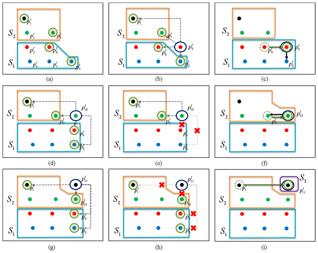 (j = 1,8,9,10), as in Figure 6h, then a new segment S3 is created, and