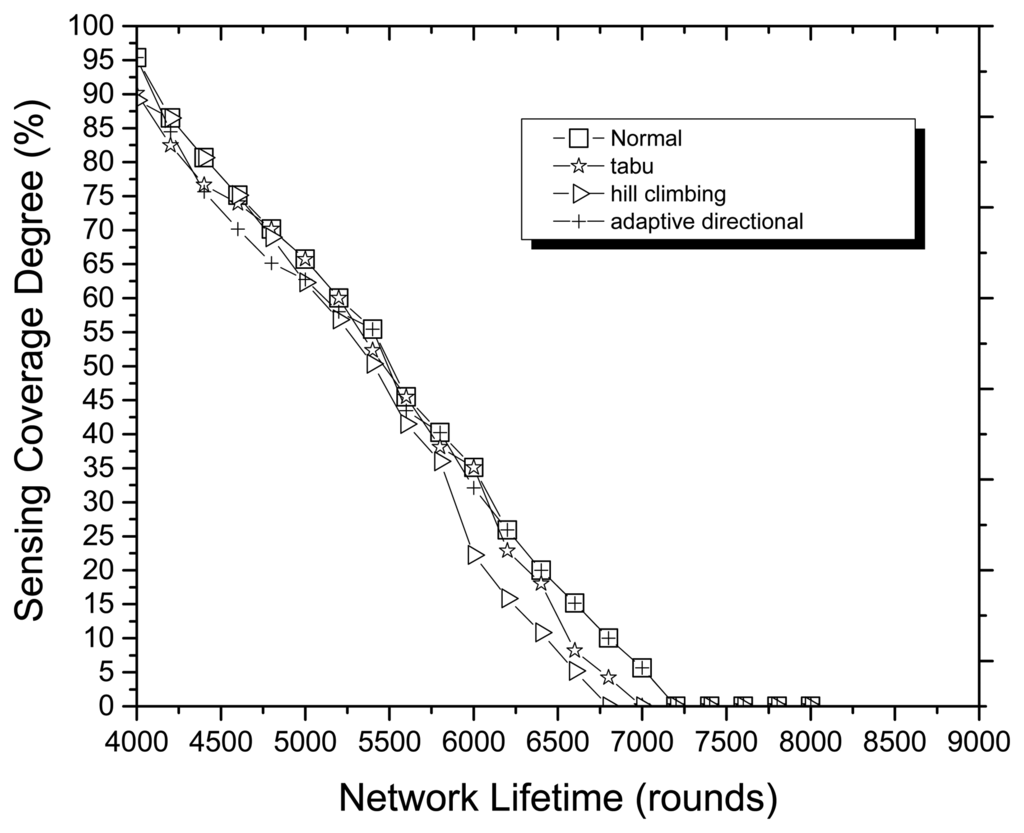 - Arivudainambi, D.; Balaji, S.; Rekha, D. Improved memetic algorithm for energy efficient target coverage in WSNs. Proceedings of the IEEE 11th International Conference on Networking, Sensing and Control (ICNSC 14), Miami, FL, USA, 7–9, April 2014; pp. 261–266.