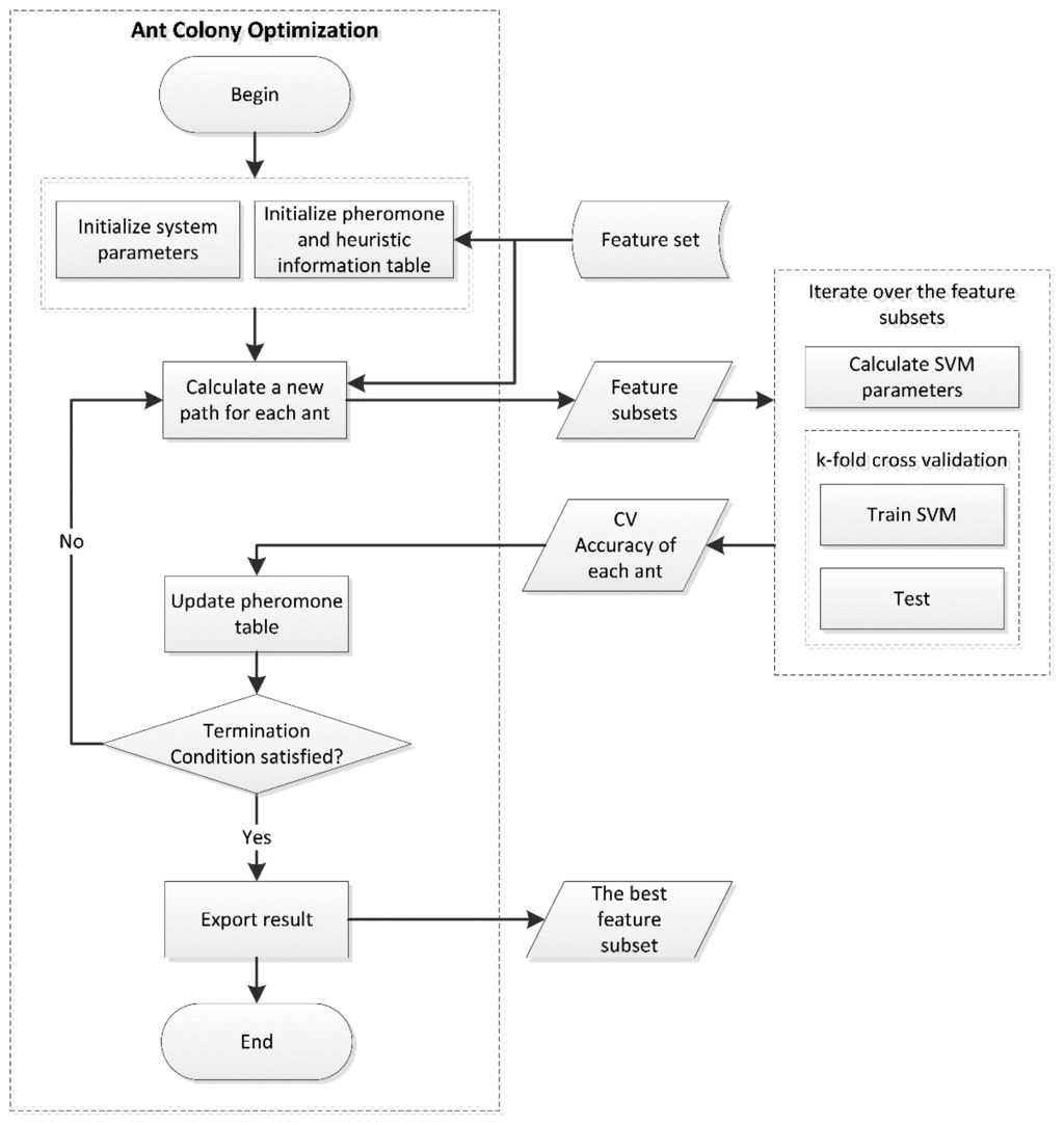 At this point, we can implement ACO after the feature set is input into the ACO-SVM method.