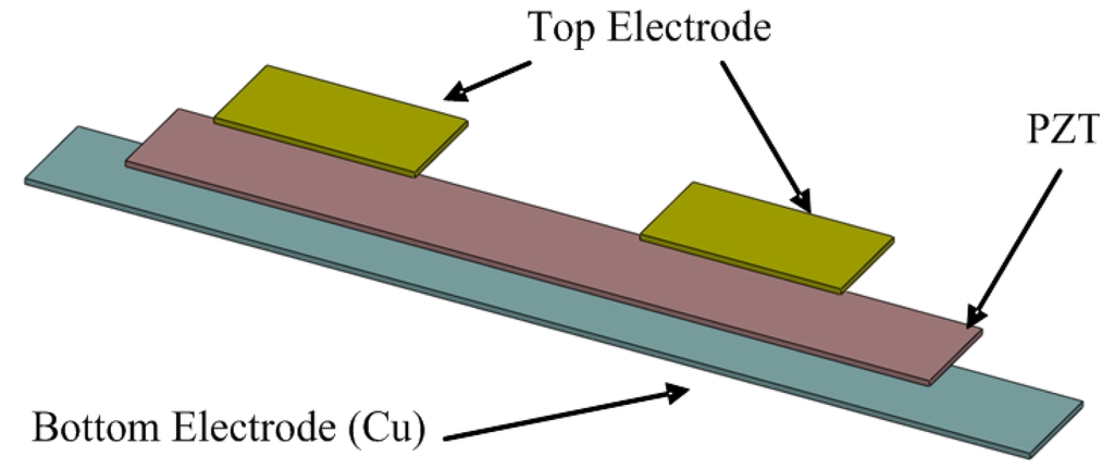 The piezoelectric sensor consists of a piezoelectric layer and a substrate. We choose PZT-5A as the piezoelectric layer and copper as the substrate. PZT-5A has a high piezoelectric constant and electromechanical coupling constant, and the energy consumption is small for conversion between mechanical energy and electrical energy. Copper has a low Young&s modulus and high electrical conductivity and can reduce the operating frequency. On the other hand, it can facilitate current conduction.