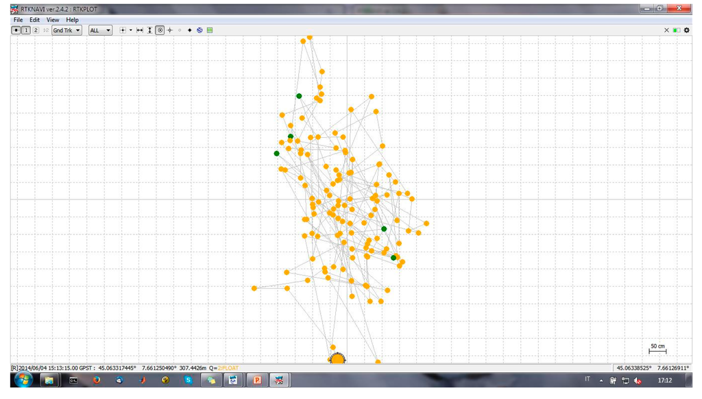 To understand if there might be some benefits in the use of different antennas, some experiments in NRTK modality were carried out, driving complex trajectories in a parking of a shopping center, always considering the VRS stream of the Regione Piemonte CORSs network.