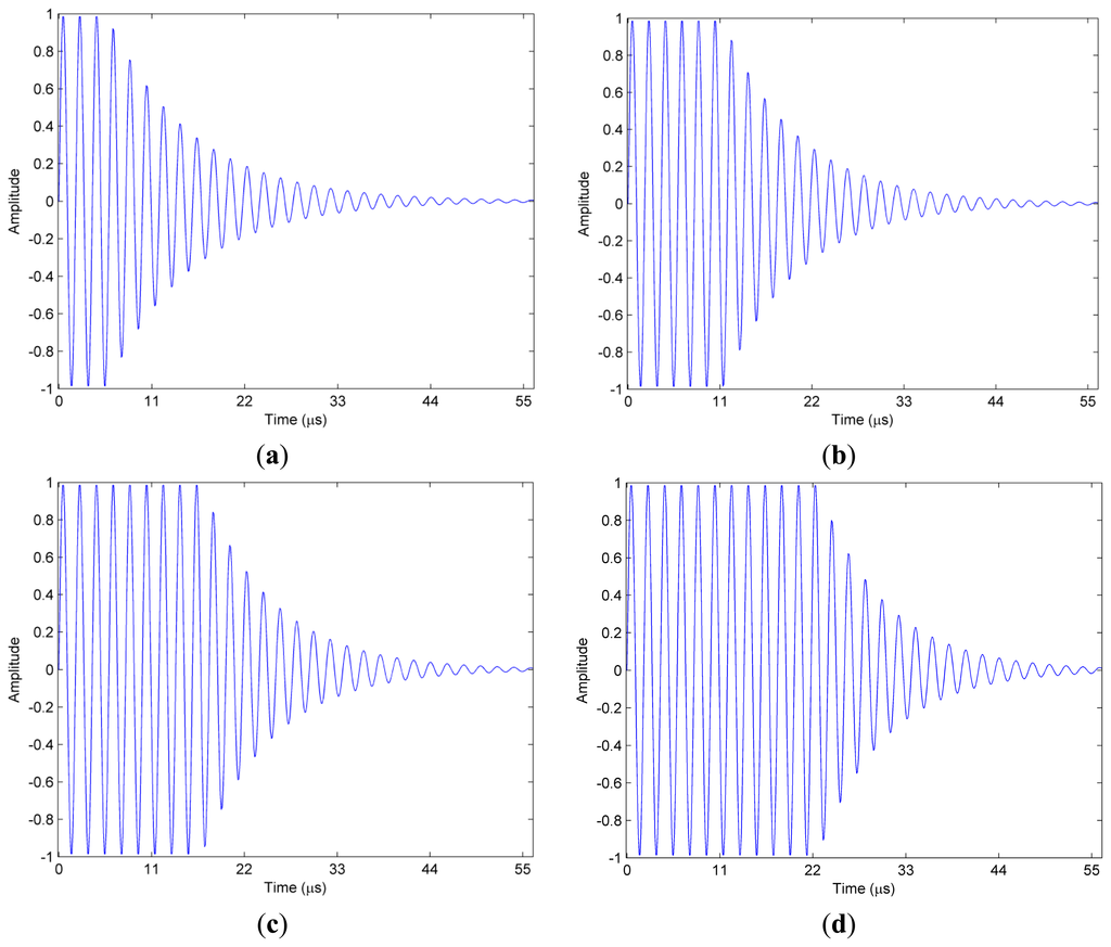 In most published papers on wireless SAW resonant sensors, Fourier transform (FT) calculations are still commonly used for resonance frequency estimation [5–9]. Even though the interpolation leads to a performance improvement, in the case of long distance and low Q factor, the length of the effective response signal would be reduced, resulting in frequency estimation errors in the traditional SAW resonant sensor system due to the resolution restriction of the FT approach.
