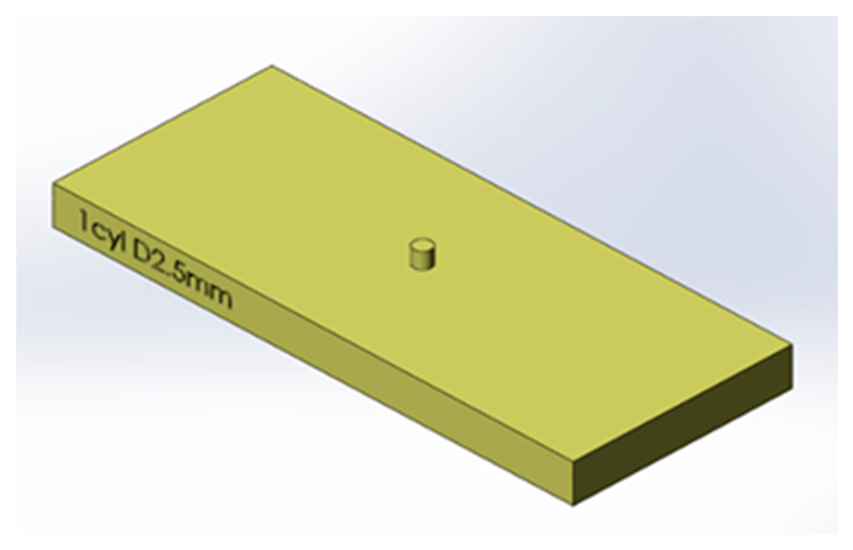 During experimentation, normal and tangential loads were applied to the bio-hybrid system. This was achieved by sliding tactile stimuli across the surface of the bio-hybrid system using the dynamic tactile stimulation platform as shown in Figure 6. The stimulus consisted of a cylinder 2.5 mm in diameter and 2.5 mm in height fabricated using 3D printing (ProJet HD 3000, 3D Systems, Rock Hill, SC, USA) and fixed to an aluminium support. The geometry used in the investigation is shown in Figure 7.
