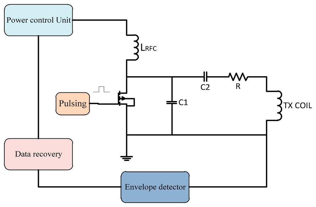 Chaimanonart et al. [54] developed a wireless implantable system implanted inside the skin of small laboratory mice. The power source adjusted its RF power, strength and achieves a stable and reliable voltage supply for the bio-implant system. Hyung et al. [55] presented a Class E PA with an automatic power control loop and load compensation circuit. The system provided an output power of 10–30.2 dBm with efficiency of 71.5%. Silay et al. [56] made a closed-loop control for power transfer circuit by controlling the supply voltage. The efficiency of the inductive link was 55%.