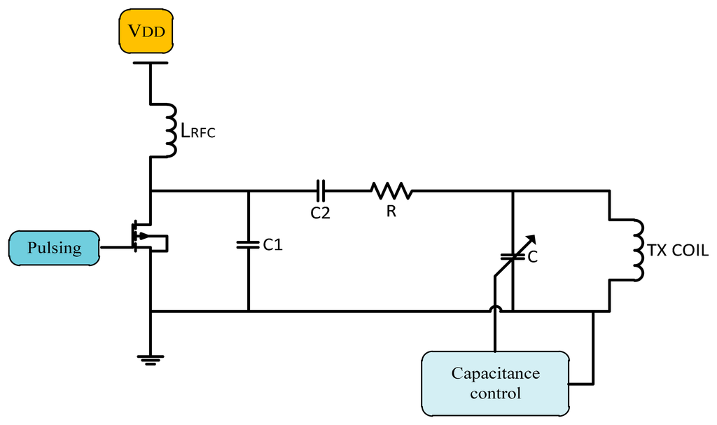 - Ma, Q.; Haider, M.R.; Yuan, S.; Islam, S.K. Power Oscillator Based High Efficiency Inductive Power Link for Transcutaneous Power Transmission. Proceedings of the 2010 53rd IEEE International Midwest Symposium on Circuits and Systems (MWSCAS), Seattle, WA, USA, 1–4 Auguat 2010; pp. 537–540.
