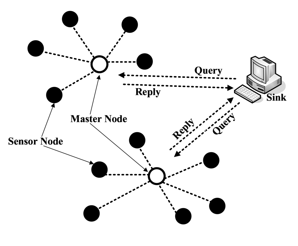 Compared with the traditional sensor network without master nodes, three major advantages of this architecture benefit the development of WSNs. First, resources are saved for sensor nodes. Master nodes store a large number of data and process complicated calculations, which cuts down the cost of storage and computation for sensor nodes and prolongs the network lifetime. Second, it improves the speed of the query response. Master nodes handle queries locally and send answers to the sink directly. Finally, network scalability is enhanced. The network is divided into subnetworks based on master nodes, and these subnetworks may be heterogeneous and run independently. As described in Section 1, the two-tiered architecture brings security challenges. More details will be given in the next subsection.