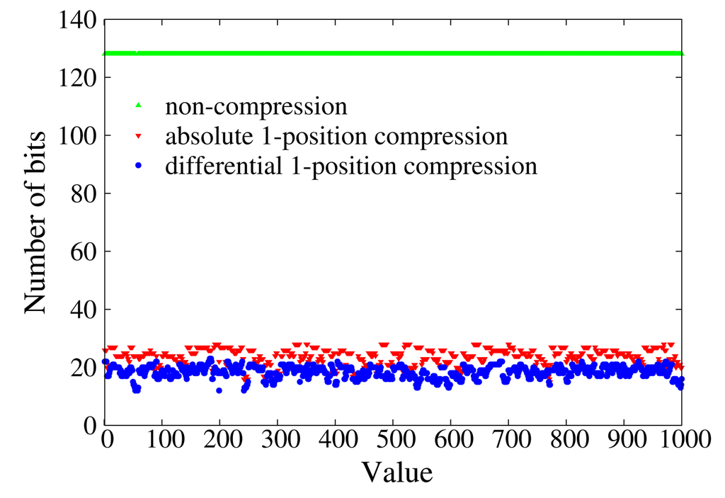 It can be observed that the BFcode is filled with a few 1-bits and an enormous amount of 0-bits, so that data compression [34] is appropriate to find the tradeoff between efficiency and accuracy. Two efficient lossless compression schemes are provided as follows.