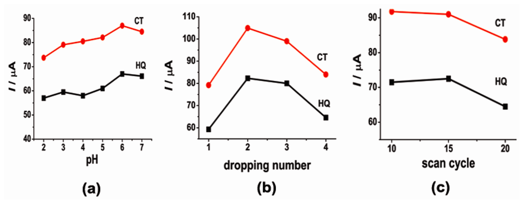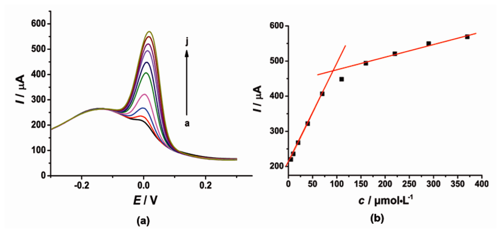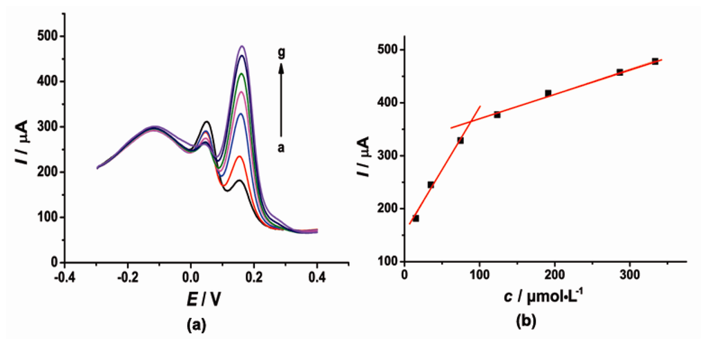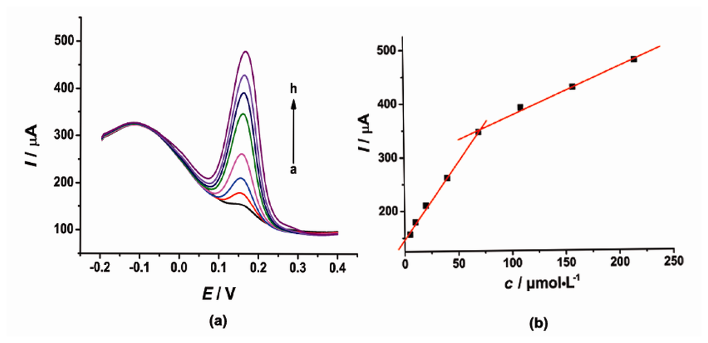 −1 and the number of cyclic voltammetry scan cycles to 10. The molecularly imprinted polymer-modified glassy carbon electrode demonstrated good performance at low concentrations for a linear range of 82–44,300 µg∙L