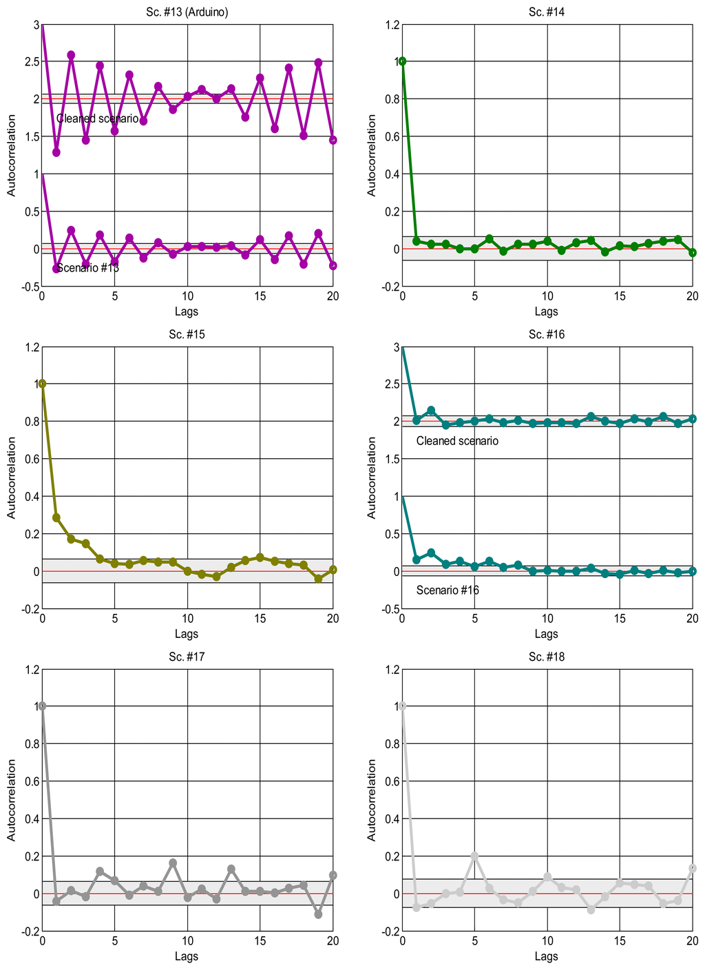 As explained in the introduction, it is a suitable approximation to assume statistical independence of sequential delay values in the stationary parts of the signal, which will allow us to apply the basic tools of the next sections and, in general, work with marginal distributions as suitable models of the data. To confirm this, we have analysed the correlation coefficients in the acquired data: the delays would be dependent if the autocorrelogram function (ACF) goes above the corresponding confidence limits; otherwise, our independence hypothesis cannot be rejected [35]. Figure 4 shows the ACFs of the scenarios, where it is clear the strong dependence of many of them when non-stationarity is not detected and handled, and also the ACF of the visually purged scenarios (eliminating the visually detected bursts and regimes marked in Figure 2). We can see how the ACF stays closer to zero in the latter, and it remains below the confidence limits in most cases. This supports our assumption of considering iid sequences of delays (independent and identically distributed) as long as they are separated in regimes and we can also detect bursts and isolated outliers. Of course, smooth variations on the underlying distribution—smooth trend changes—are still possible, but the results obtained with our abrupt detection method also applies in many cases that exhibit such trending.