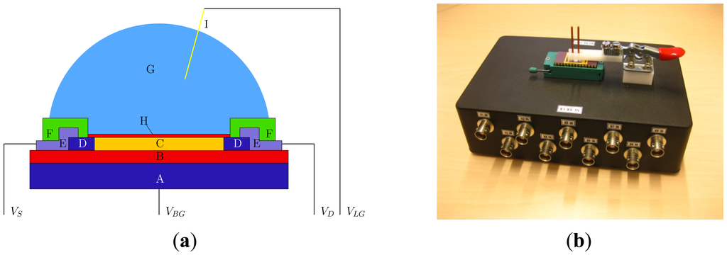 - Mescher, M.; Marcelis, B.; de Smet, L.C.P.M.; Sudhölter, E.J.R.; Klootwijk, J.H. Pulsed method for characterizing aqueous media using nanowire field effect transistors. IEEE Trans. Electron Devices 2011, 58, 1886–1891. [Google Scholar]