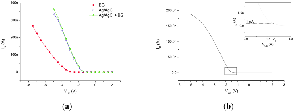 - Gao, X.P.A.; Zheng, G.F.; Lieber, C.M. Subthreshold regime has the optimal sensitivity for nanowire FET biosensors. Nano Lett. 2010, 10, 547–552. [Google Scholar]