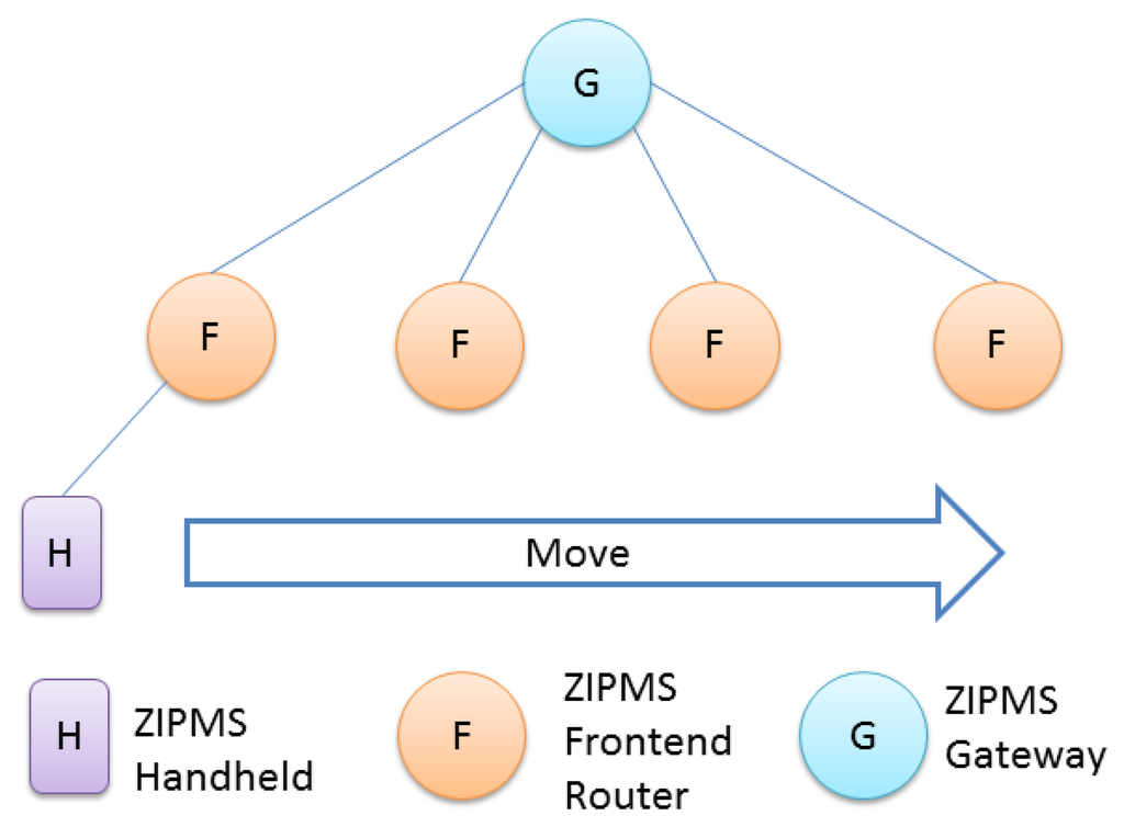 Summarizing from the previous section, the ZiM2 mobile is designed for ZIPMS handheld devices to handle the handoff procedure from ZIPMS frontend router 1 to ZIPMS frontend router 2. The detailed handoff procedure is shown in Figure 2.