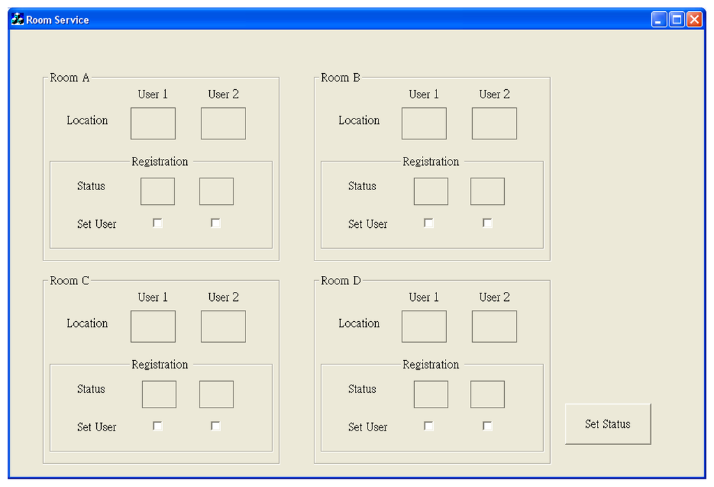 In Figure 9, the User Interface (UI) shows the current location of each handheld. When a handheld attaches to a new frontend router, the UI updates immediately to show its latest position. A panic button was incorporated into the handheld. When the user presses the panic button, the UI will indicate the location with red color and the name of device will be shown immediately. Subsequently, medical practitioners may be sent to the spot and an acknowledgement reply signal will be sent to the panic handheld. The bi-directional communication between the handheld and the gateway was also used in the patient paging service.