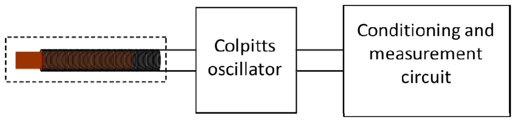 The sensor was designed using four coils of different sizes and also with a different number of turns but with the same self-inductance (L = 39.5 μH). In this way, the electronic circuit can be the same for different sensor cores. Thus, as the sensor has a dynamic range equal to the length of the inductance, the core sensor (coil with its ferromagnetic core) can be exchanged with the same electronic measuring system. In this way, the range of measurement is only determined by the core sensor selected, using the same electronics for all sensor cores. The resolution obtained is higher than 1/100,000.