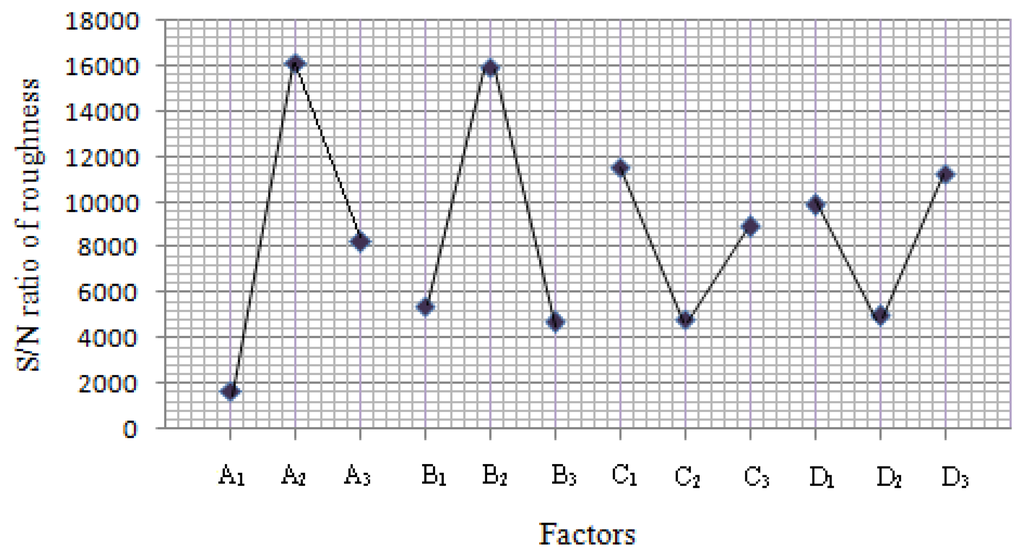The S/N ratio is a logarithmic function used to optimize the process or product design and minimize the variability. The maximization of S/N ratio allows reduction of variability of the process against undesirable changes in the neighboring environment or uncontrollable factors. To minimize variability, the level of factor which produces the higher value of S/N ratio must be chosen. The S/N ratios were calculated using Equation (1) [16] as follows: