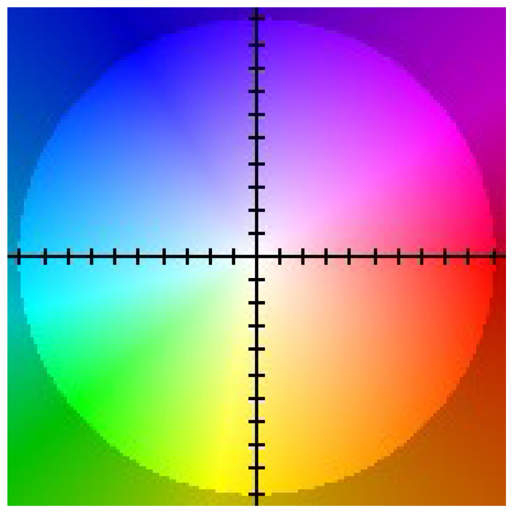 This is why in case of dense flow visualization a method based on appropriate pixel colouring according to the value of obtained u, υ flow vectors is used. An example colouring scheme proposed in [9] is presented in Figure 5.