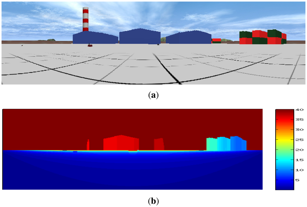 To produce this type of range image, ToF cameras (such as the Kinect®) are becoming very popular, because they provide range information together with color information without arduous calibration processes. However, when using other sensors, such as 2D or 3D LIDAR devices, sensor fusion techniques [32] can be used to assign color information to the range data matrix (D). An example of this sensor fusion can be seen in Figure 2.