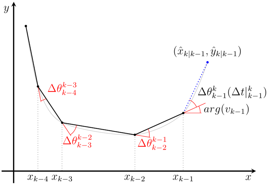 For the correct behavior of the tracking module, it is very important that a reasonable movement model is chosen for the tracked object. There are several options to make these predictions, which are based on constrained networks [36], on learned motion patterns [37] or on statistical approaches [38]. The herein applied approach does not require any previous knowledge about the object (since it is not available), but previous observations made by the detection algorithms. A constant linear and angular velocity model has been chosen for the ground coordinates (x, y) and a constant linear velocity model for the altitude. This latter assumption is justified, because most objects would be ground-bounded and most changes in height will be produced by errors in the detection process.