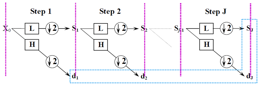 The fast wavelet transform algorithm for electrochemical emission signals is illustrated in Figure 4. The energy accumulated in the subspace can be calculated by: