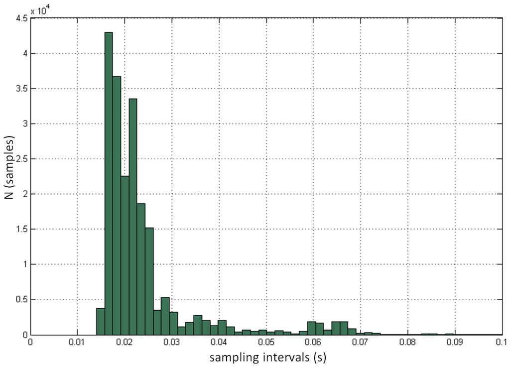 An important limitation of the controller's performance is its inconsistent sampling frequency. Its mean value of less than 40 Hz is relatively low and varies significantly under both static and dynamic conditions. The main drawback of the non-uniform sampling is the great difficulty to synchronize the controller with other real-time systems since it requires difficult post processing and re-sampling methods and operations.