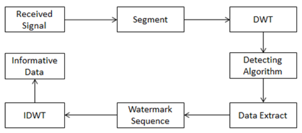After we determine the location of the watermark sequence, we can extract the hidden information. The extraction model is shown in Figure 4.