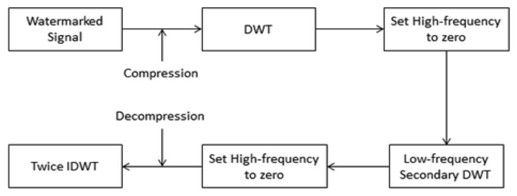 Since the high frequency sub-band in Equation (8) are neglected by the proposed embedding algorithm, only the lowest DWT coefficients are adjusted. That is