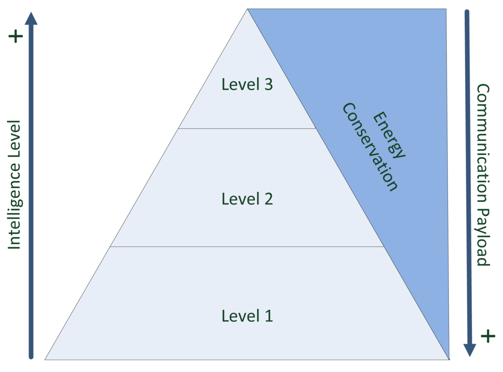 In consequence, a decrease of transmissions by reducing the amount of data to be sent should result in a significantly reduced energy consumption. Hence, to reduce the overall energy consumption, we suggest a local intelligence approach performing significant local data processing (Figure 3).