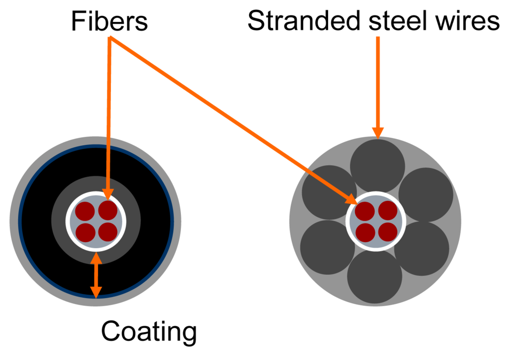 GTC Kappelmeyer uses the technology of distributed fibre optic temperature sensing that offers the possibility to measure the ambient temperature along fibre optical cables with high accuracy. This measuring method is based on the fact that the optical properties of the fibre depend on the ambient temperature. Fibre optical cables suitable for applications in hydraulic engineering usually consist of a core with at least two fibres and of a mechanical strength member covered by an outer jacket (Figure 10).