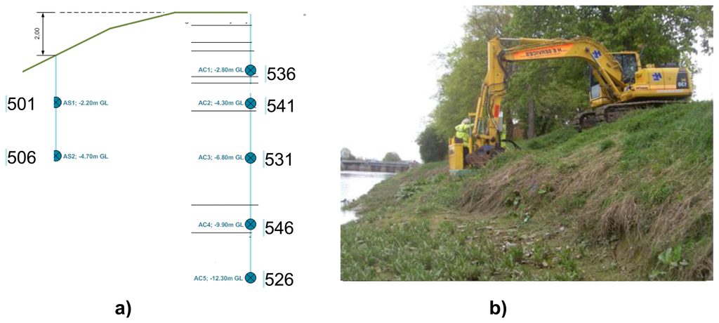 - Thiele, E.; Helbig, R.; Erth, H.; Krebber, K.; Nöther, N.; Wosniok, A. Dike monitoring. Proceedings of the 4th International Symposium on Flood Defence: Managing Flood Risk, Reliability and Vulnerability, Toronto, ON, Canada, 6–8 May 2008; Available online: http://ebooks.gfz-potsdam.de/pubman/item/escidoc:6036:7/component/escidoc:6037/19_Thiele.pdf (accessed on 10 November 2013).