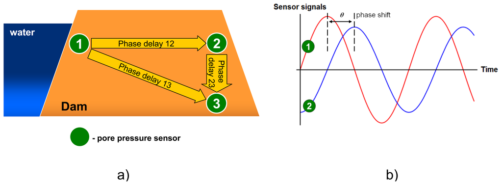 A more detailed description of the phase shift approach and its applicability in early warning systems can be found in [38], where a finite element analysis and analytical solutions have been compared to the sensor data from the “Livedike” levee located in Groningen (The Netherlands).