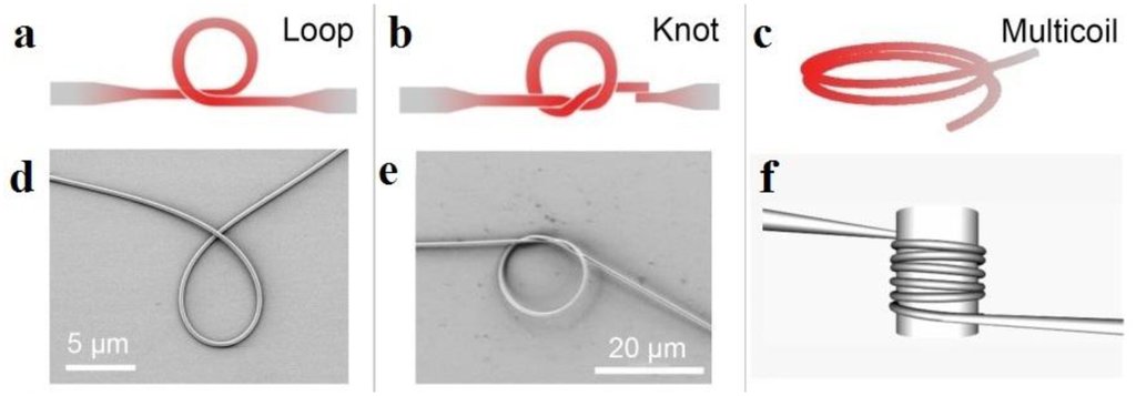 When a microfiber is assembled into a closed loop, a microfiber-based circular cavity can be formed via evanescent coupling at the overlapping area. Depends on the geometric parameters and the coupling condition, the Q-factor of a microfiber cavity varies from several hundreds to higher than one million [2]. According to their structures, so far there're four kinds of microfiber circular cavities: loop, knot and multi-coil, as shown in Figure 10.
