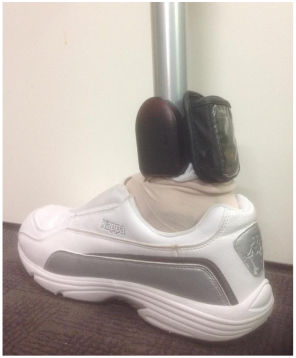 Participants were supplied with SAM and GPS devices. Both devices were secured to the participant's prosthesis with a single Velcro strap (see Figure 1). The devices remained attached to the prosthesis for the duration of the study period. The SAM and GPS devices were programmed for data collection using separate networked computers, thereby ensuring local time for each device was identical and preventing mismatched times in the data linkage process. Participants wore the SAM and GPS devices for a period of seven consecutive days and were supplied with a battery charger and clear written instructions for charging the GPS device nightly [31]. At the time of provision of SAM and GPS devices, clinical characteristics (age, time since amputation and indication for amputation), employment status and standard clinical measures were collected. These standard clinical measures were the AMP-PRO, gait velocity, and gait endurance assessed by the six minute walk test (6MWT). K-levels were assigned by an experienced physiotherapist during assessment of standard clinical measures and clinical characteristics, primarily using the AMP-PRO to guide classification [16]. Briefly, K1 are limited or unlimited household ambulators, K2 are limited community ambulators, K3 are community ambulators capable of traversing most environmental barriers, and K4 amputees are capable of high impact, stress or energy levels [16]. Assessment of gait velocity and the 6MWT were selected based on their previous use in lower-limb amputees [16,18,19]. Gait velocity was assessed using an instrumented GAITRite walkway (CIR-Systems Inc., Sparta, NJ, USA) with embedded pressure sensors to capture individual footfall data over an active area of 4.9 m × 0.6 m. Participants completed 10 consecutive walking trials over the GAITRite at their self-selected gait speed. Data were collected at 120 Hz and analysed using GAITRite software (version 4.5). The 6MWT [32] was used to assess endurance and was assessed over a 20 m track with the participant turning at each end.