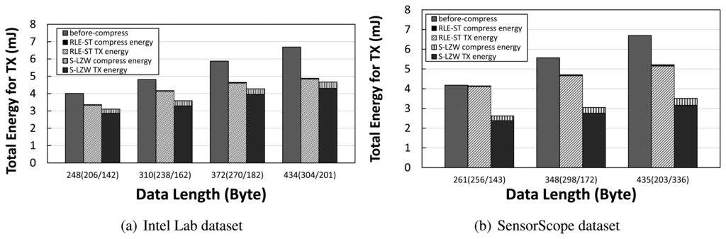 - Sadler, C.M.; Martonosi, M. Data compression algorithms for energy-constrained devices in delay tolerant networks. Proceedings of the 4th International Conference on Embedded Networked Sensor Systems, Boulder, CO, USA, 31 October–November 2006; pp. 265–278.