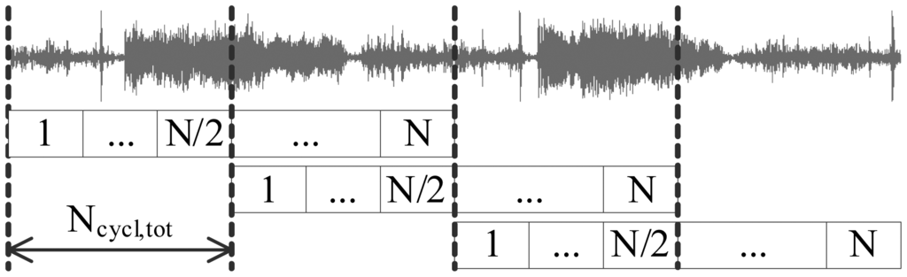 Discrete STFT X[m, k] defined in Equation (1) calculates the k-point discrete Fourier transform of discrete-time windows w, sliding by step m over the signal, x. The non-rectangular window function is used to prevent spectral leakage due to finite window length N. Commonly, cosine window functions, such as Hann's or Hamming windows, are used. Furthermore, the overlap between successive windows may be used to show transients of a short duration in the signal [15].