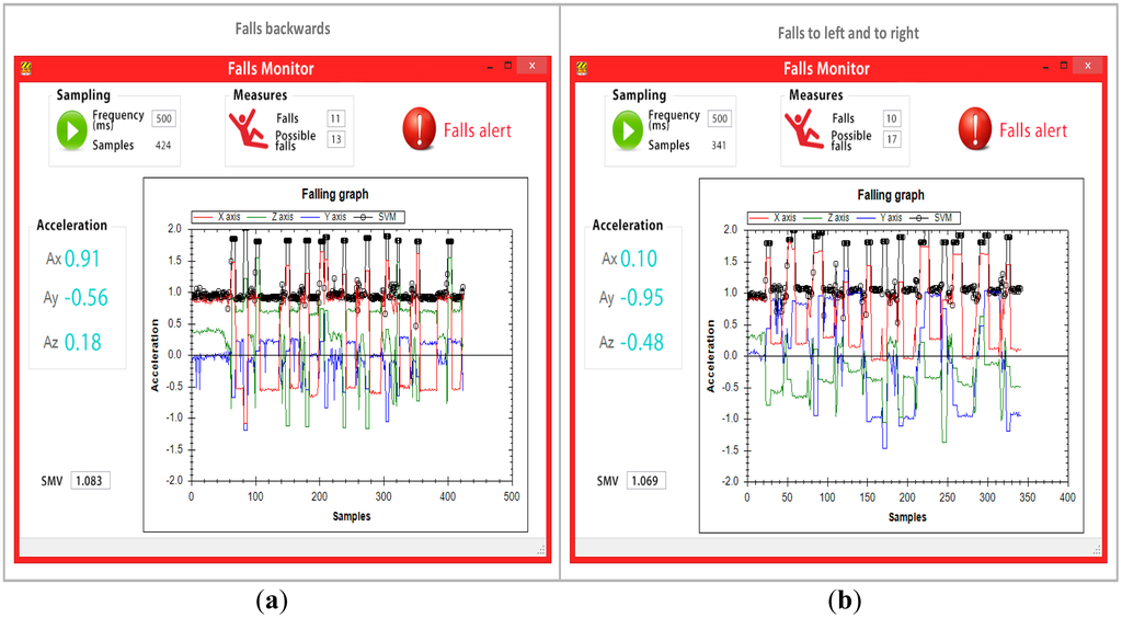 The Signal Magnitude Vector (SMV) was calculated to detect a possible fall, which, according to [26], is SMV > 1.8 g.