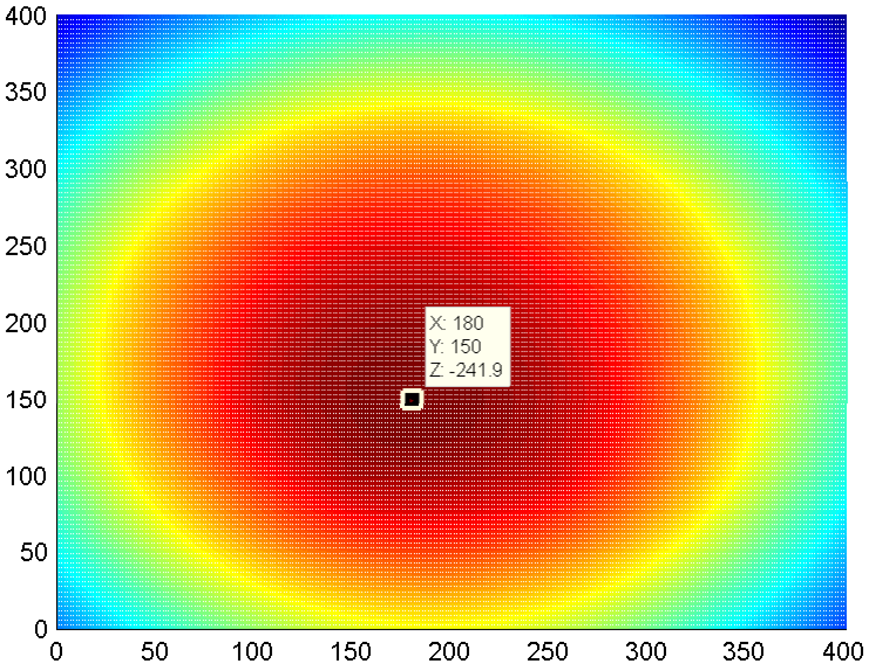 Clearly, the center of the damage was located as the top value point from the fusion tomography map. It proved the ability of the proposed approach to identify the correct position of the simulated damage (i.e., mass of load) on a composite panel with anisotropic character.