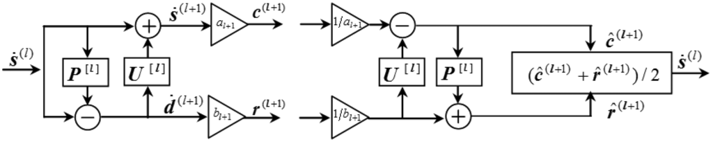 The al+1 and bl+1 are the normalization factors at level l + 1. The decomposition results of the approximation signal ṡ(l) at level l with IRSGWT are expressed as follows: